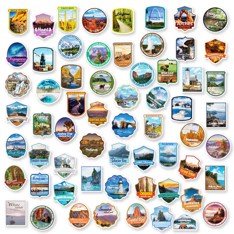 50 stuk nationaal park Cartoon stickers voor kinderen en volwassenen Beloningsstickers Journal Laptop Telefoon Stickers