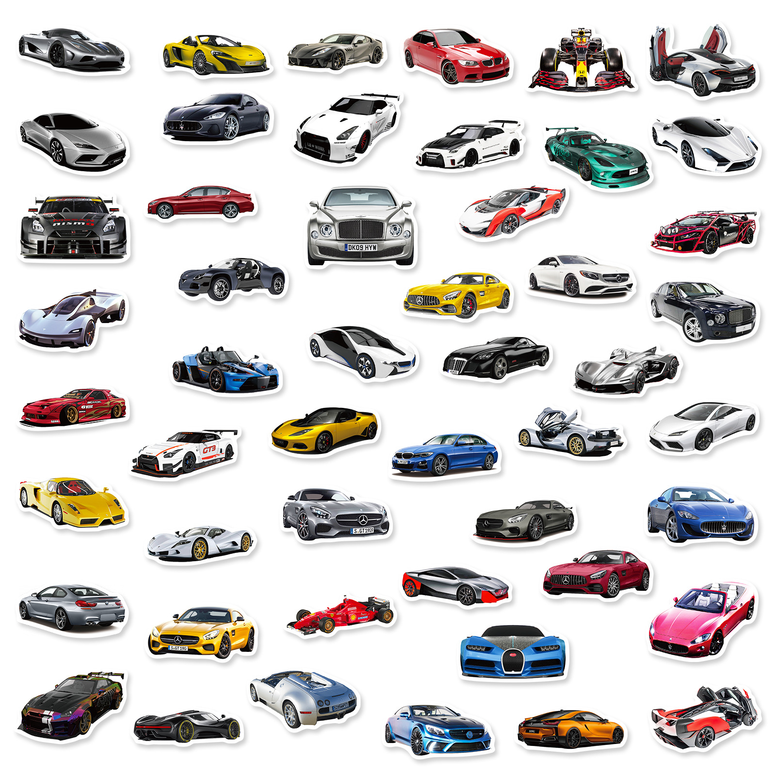 50 stuk race auto Cartoon stickers voor kinderen en volwassenen Beloningsstickers Journal Laptop Telefoon Stickers