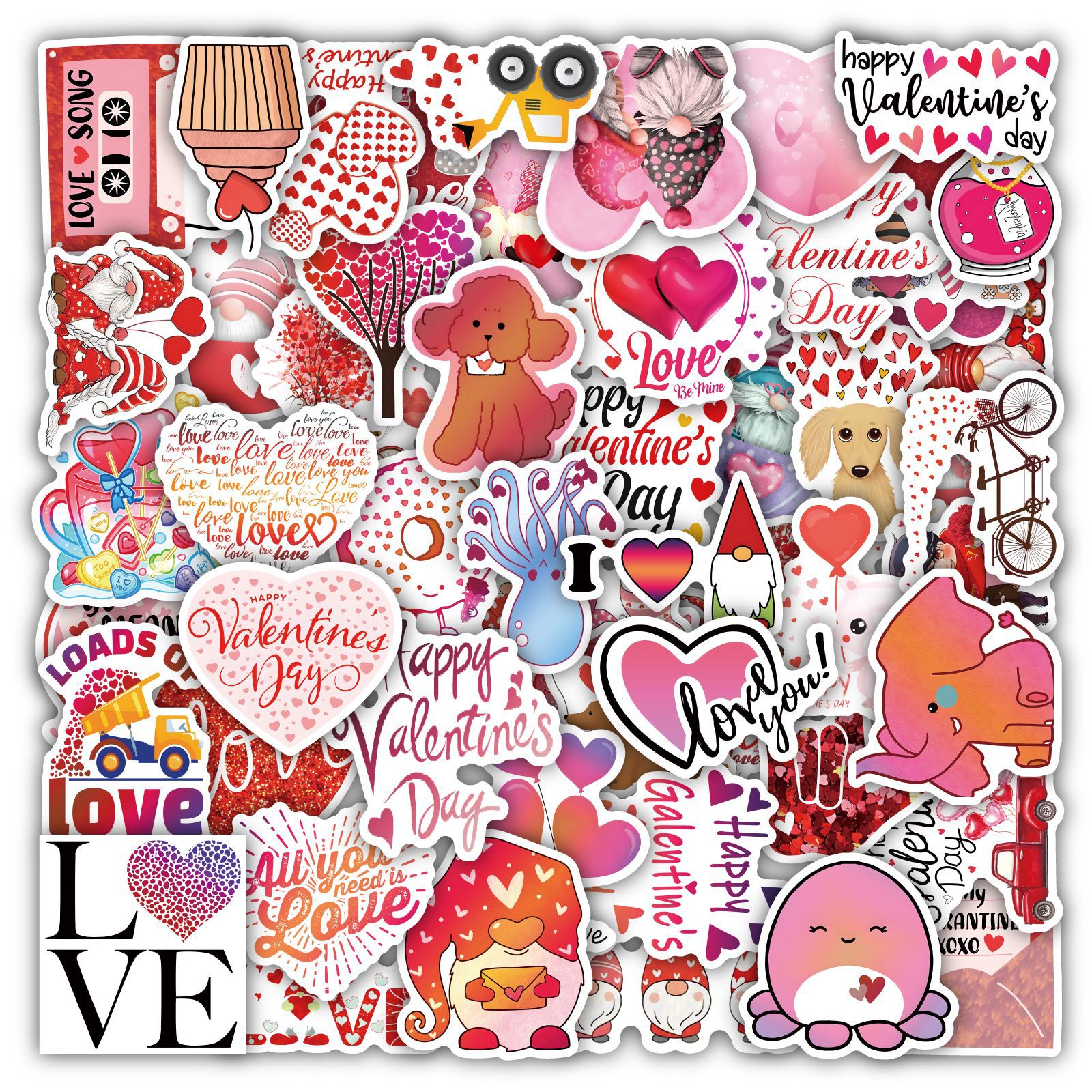 50 stuk valentijnsdag love Cartoon stickers voor kinderen en volwassenen Beloningsstickers Journal Laptop Telefoon Stickers