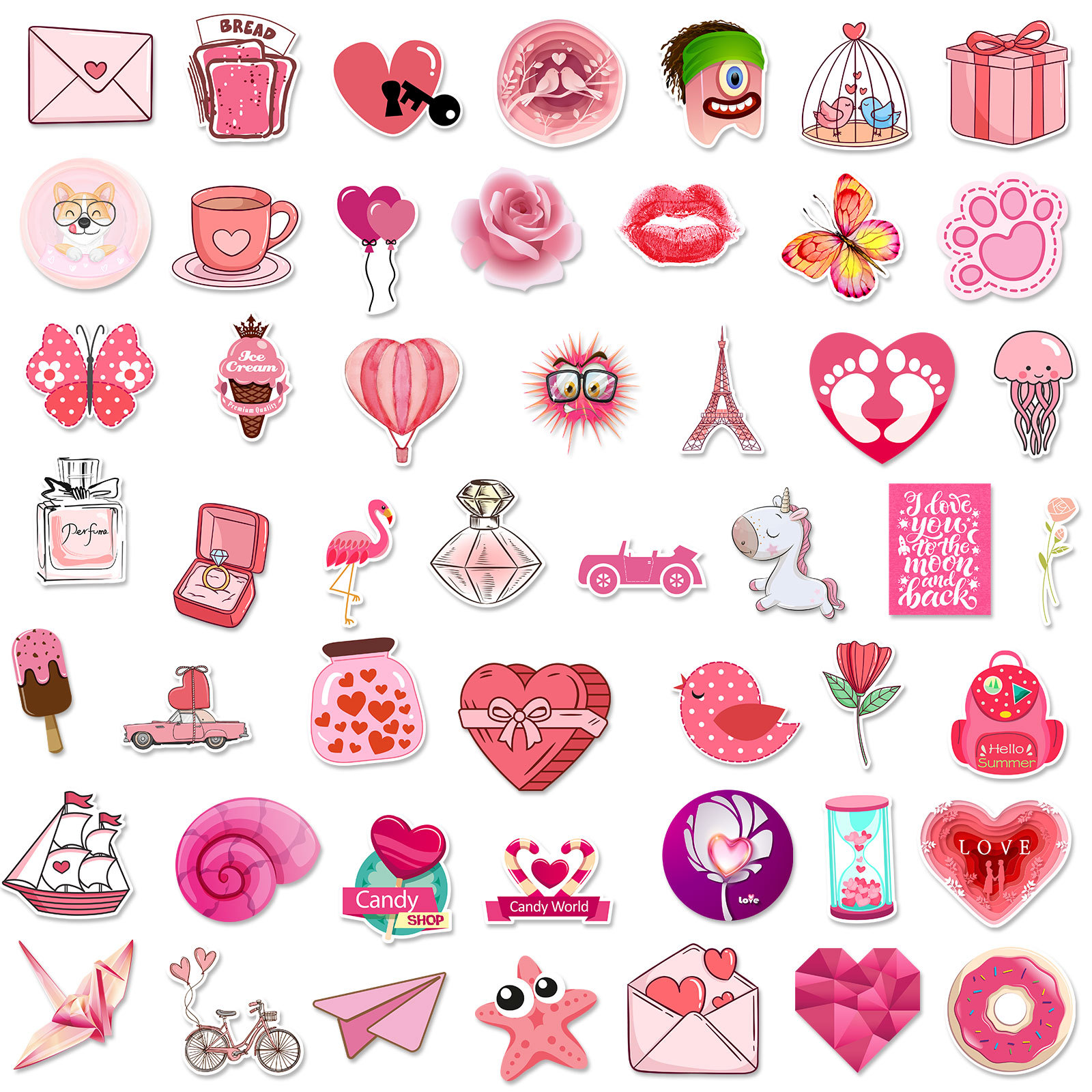50 stuk valentijnsdag love Cartoon stickers voor kinderen en volwassenen Beloningsstickers Journal Laptop Telefoon Stickers