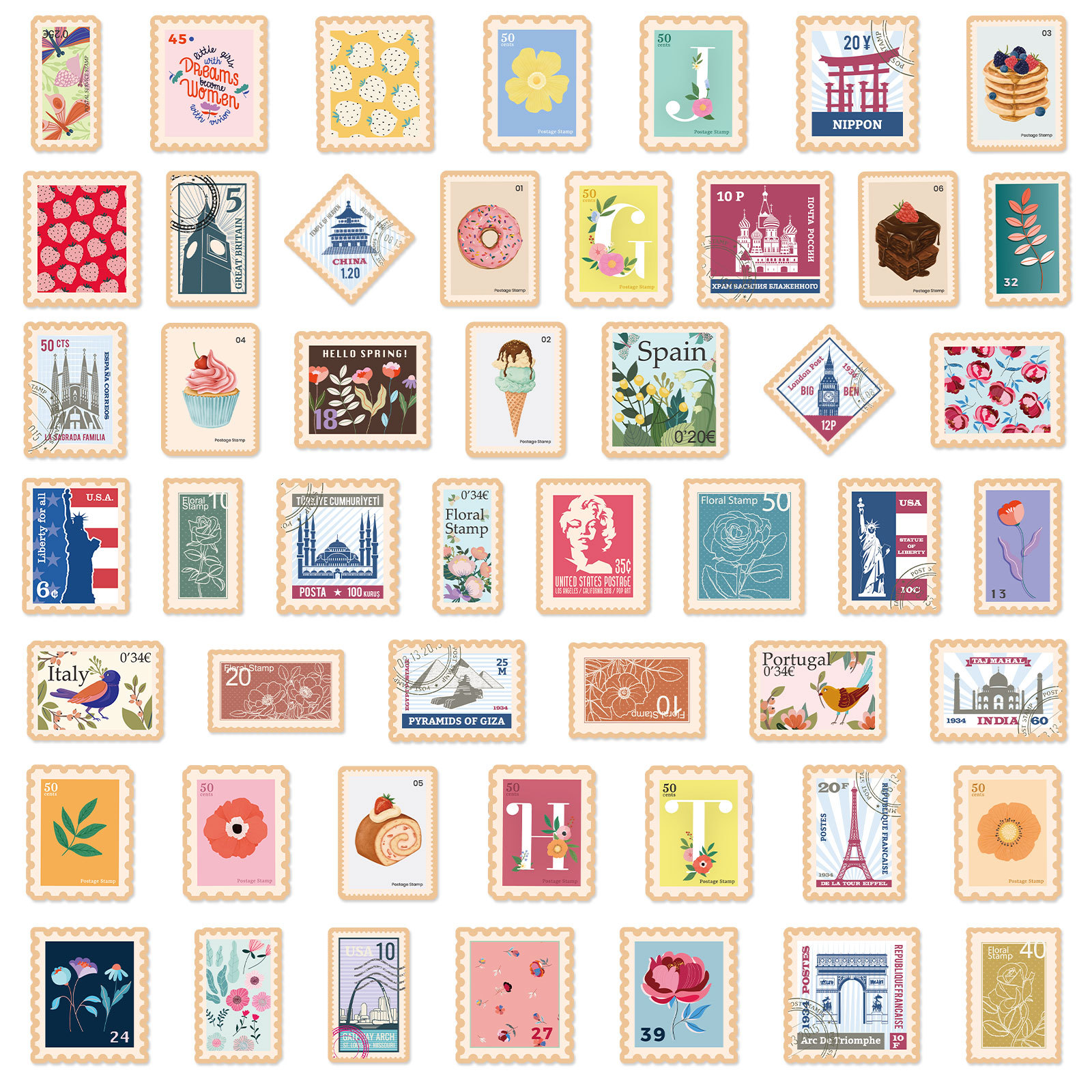50 stuk vintage stempel Cartoon stickers voor kinderen en volwassenen Beloningsstickers Journal Laptop Telefoon Stickers