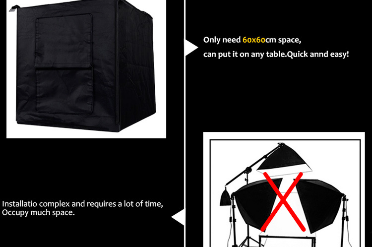 deze Fotografie Studio Licht Tent is duurzaam, en het heeft verbazingwekkende schieten effect. Perfect voor items zoals Sieraden, speelgoed, elektronica, cosmetica enzovoort.