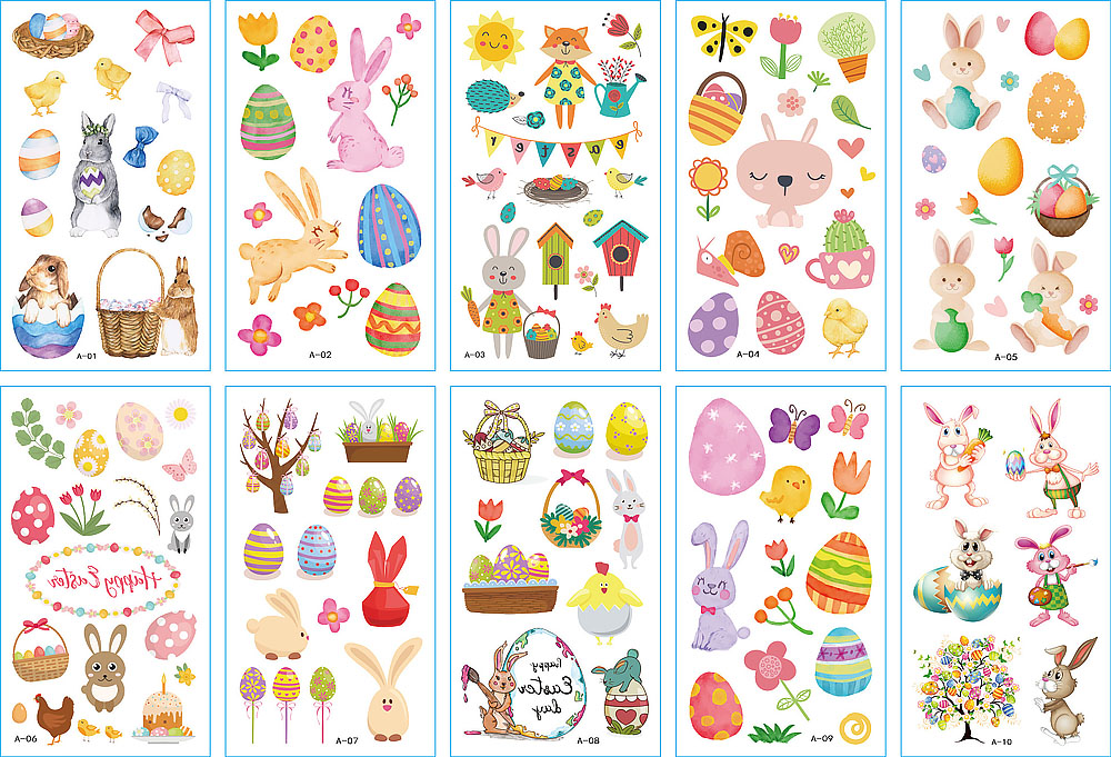 10 stuk Tattoo Sticker Gezicht Hand Cartoon Nep Tatoo Tijdelijke Waterdichte Taty model A Pasen