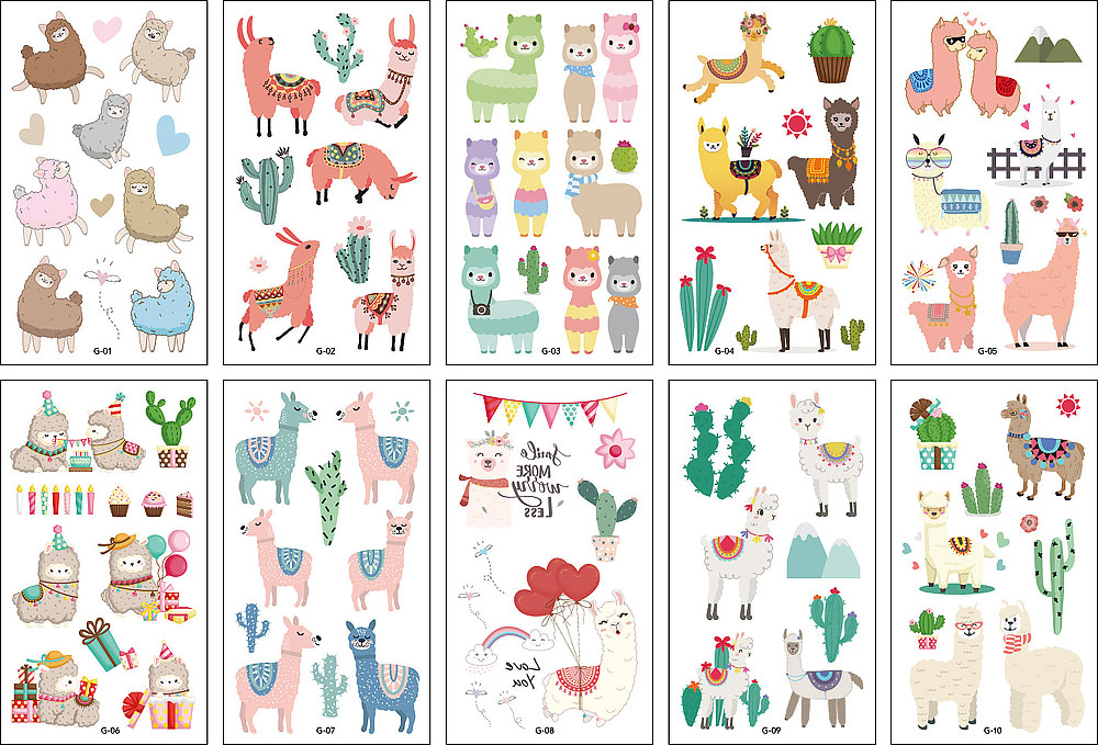 10 stuk Tattoo Sticker Gezicht Hand Cartoon Nep Tatoo Tijdelijke Waterdichte Taty model G Alpaca