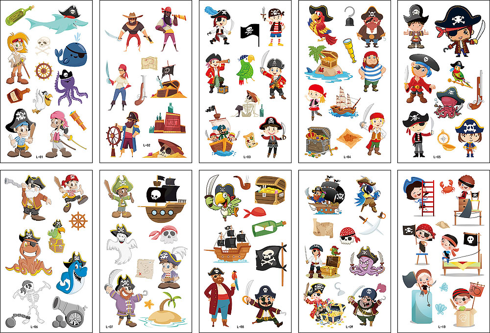 10 stuk Tattoo Sticker Gezicht Hand Cartoon Nep Tatoo Tijdelijke Waterdichte Taty model LP Piraat