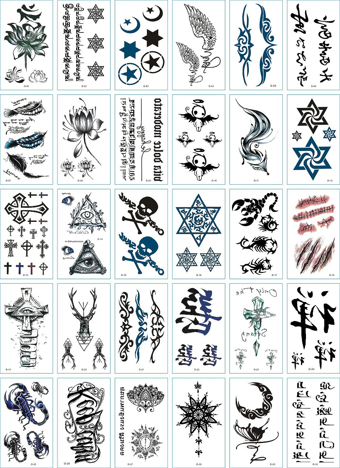 30 stuk Tattoo Sticker Gezicht Hand Mooie Body Art Nep Tatoo Tijdelijke Waterdichte Taty model D