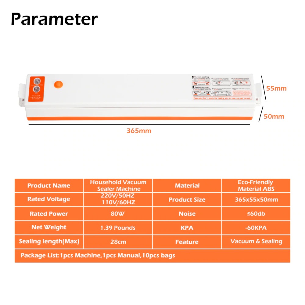 Huishoudelijke Voedsel Vacuumsealer Verpakkingsmachine Film Sealer Vacuümverpakker Voedsel Vers houden GRATIS GESCHENK 10 stks Opbergzakken