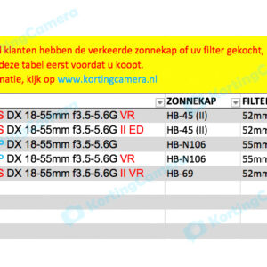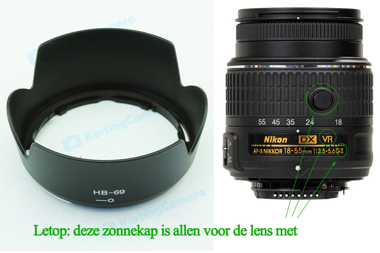 LETOP: Nikon heeft veel models van 18-55mm lens, en deze zonnekap is alleen voor de lens met AF-S, G, en VR II